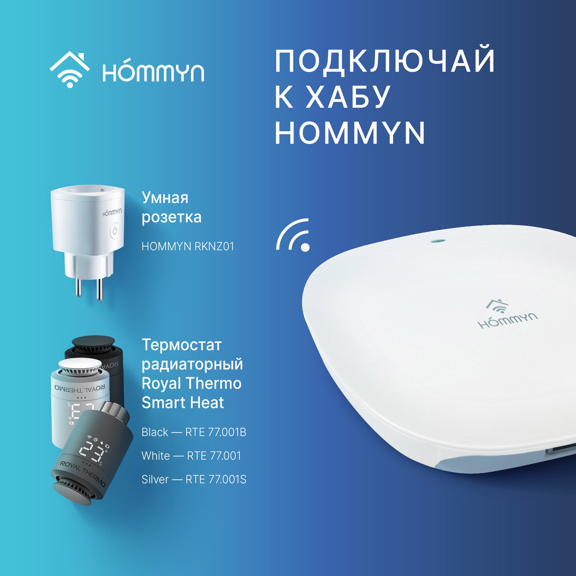 - Блок управления (шлюз) Hommyn Hub HH-01 требуется для подключения zigbee устройств HOMMYN к приложению HOMMYN (доступно в App store и Google Play).