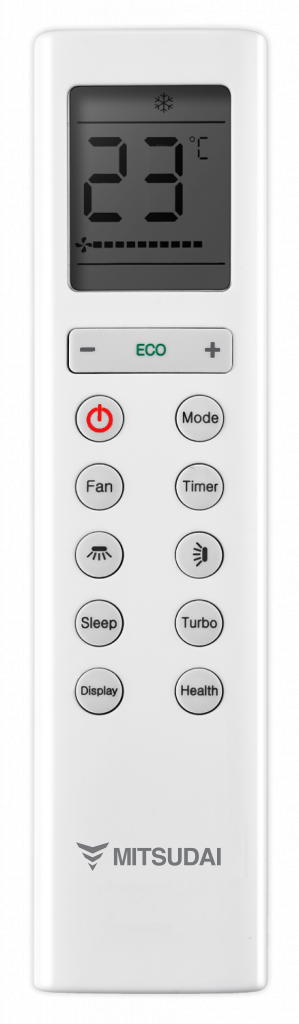- Оснащен 5 скоростями вентилятора и режимом TURBO для быстрого охлаждения/обогрева помещения.